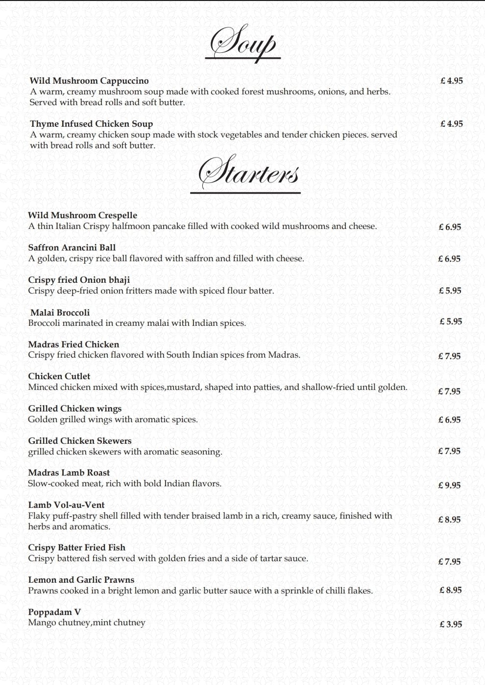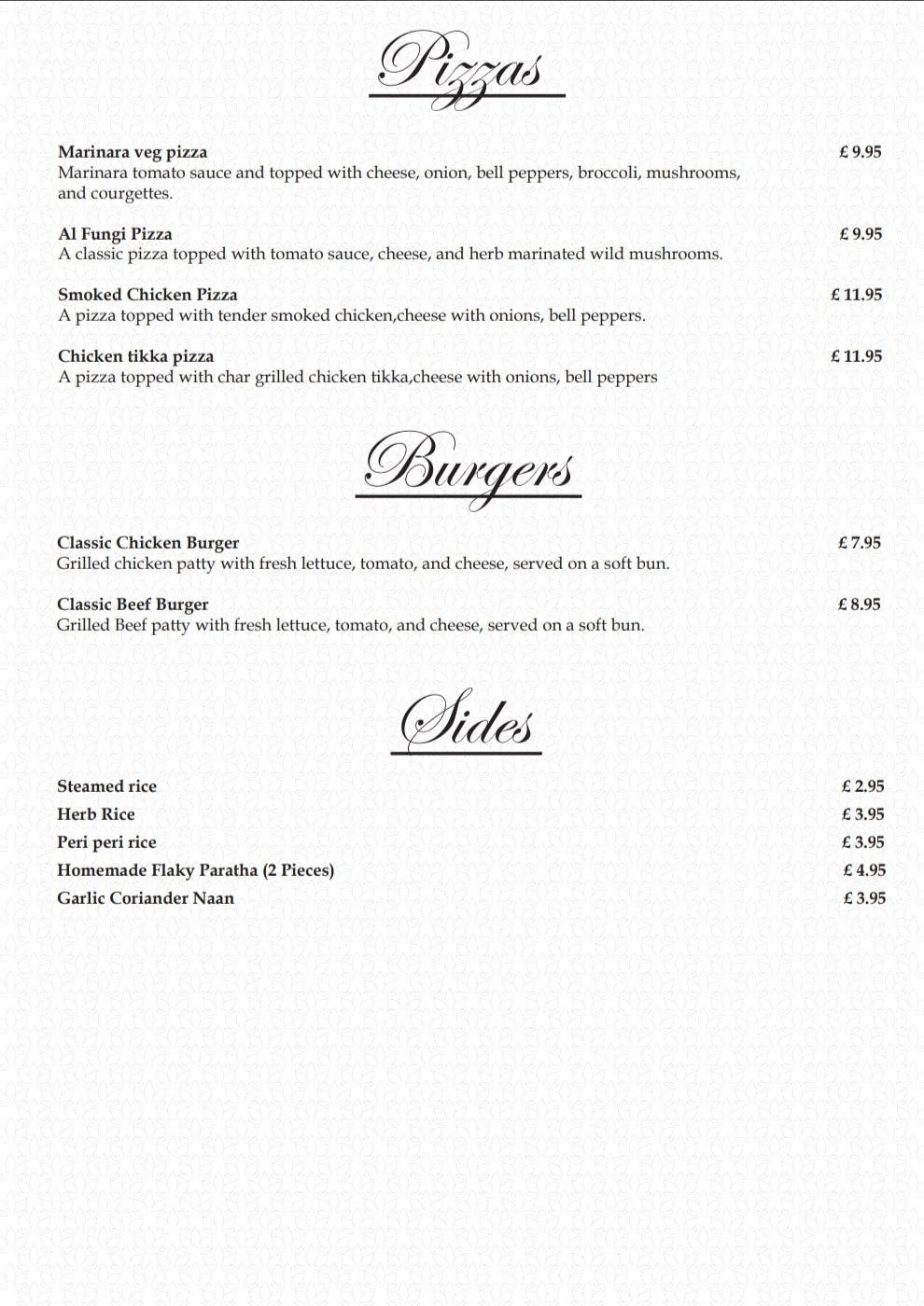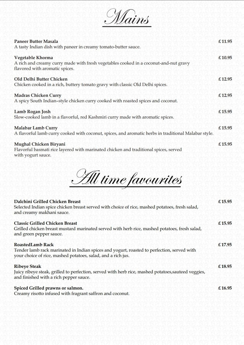 Dalchini Take away Menu